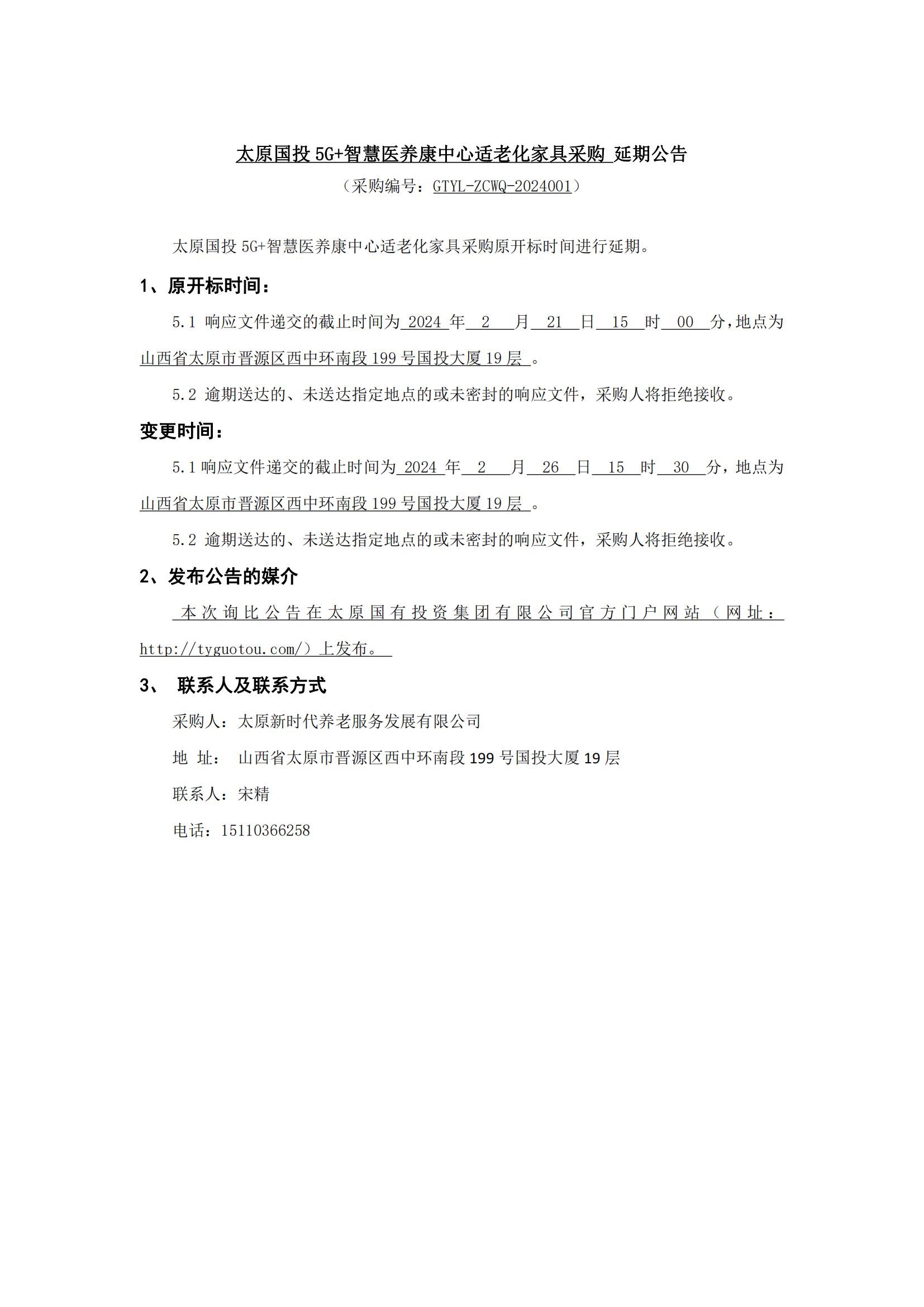 太原國(guó)投5G+智慧醫(yī)養(yǎng)康中心適老化家具采購(gòu) 延期公告