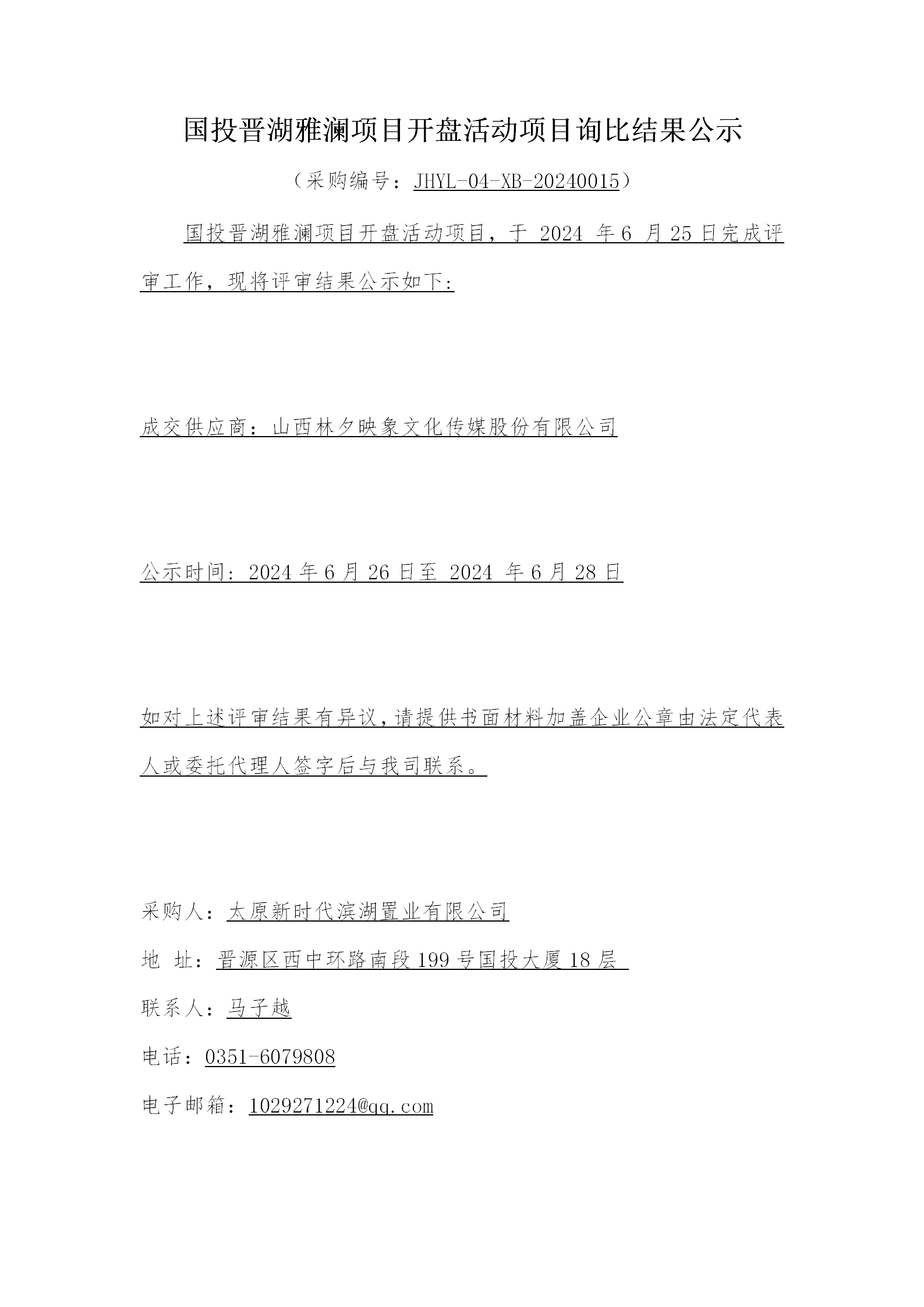 國(guó)投晉湖雅瀾項(xiàng)目開(kāi)盤(pán)活動(dòng)項(xiàng)目詢(xún)比結(jié)果公示