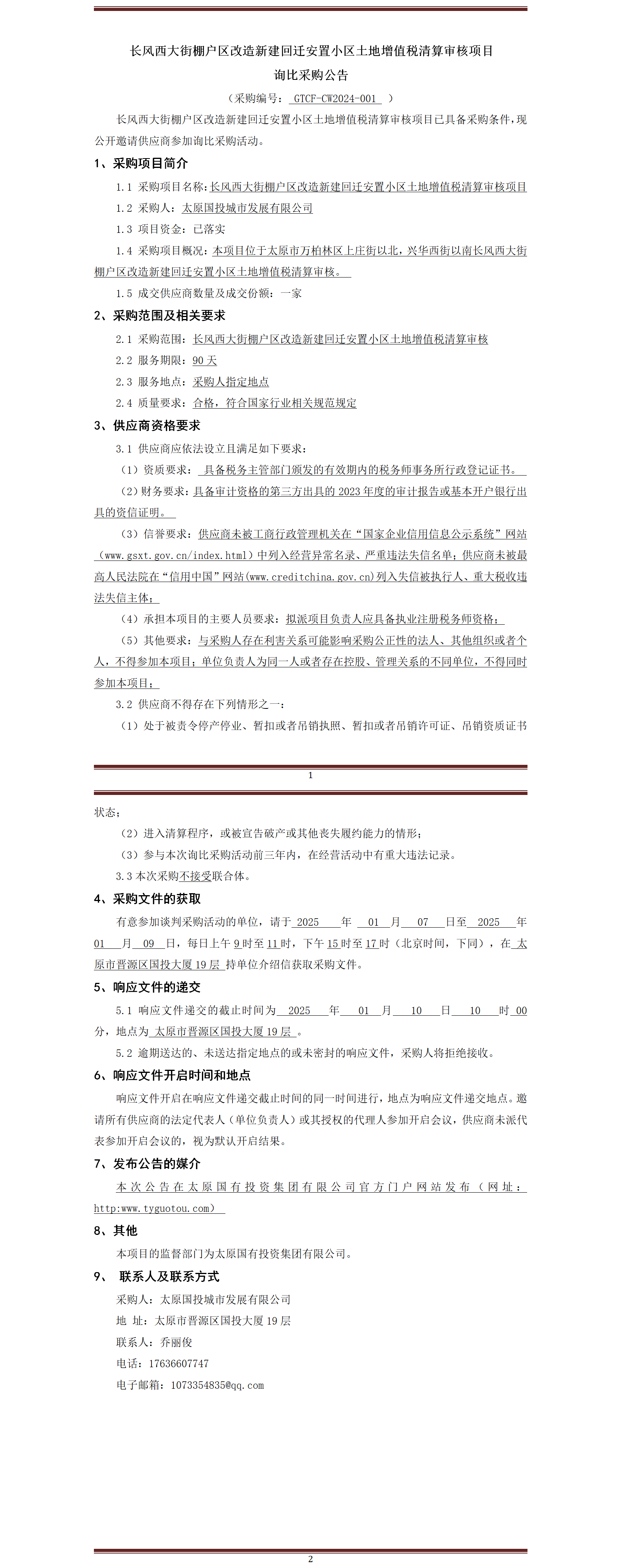 長風西大街棚戶區改造新建回遷安置小區土地增值稅清算審核項目詢比采購公告