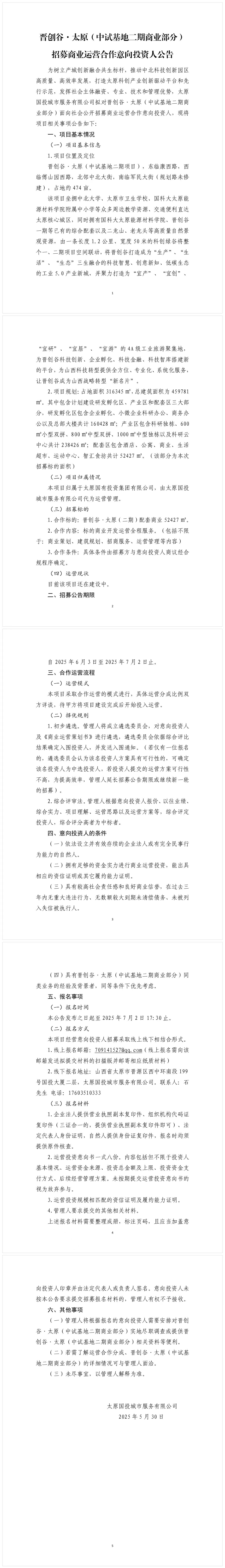 晉創(chuàng)谷·太原(中試基地二期商業(yè)部分) 招募商業(yè)運(yùn)營(yíng)合作意向投資人公告